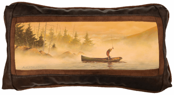 Sweetwater Trading Company® artistic luxury leather pillows are handcrafted and made-to-order using only superior quality leather and faux leather fabrics. Artwork is always printed on genuine chamois leather, which gives the image a warm and beautifully aged appearance. A thin border of cognac brown faux suede leather surrounds the artwork. A bold, hickory brown fabric (available in genuine leather or faux leather) proceeds to frame the showpiece. Cognac brown faux suede leather comprises the welt and the back of the pillow.