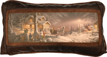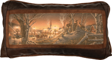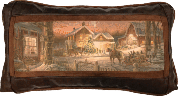 Sweetwater Trading Company™ artistic luxury leather pillows are handcrafted and made-to-order using only superior quality leather and faux leather fabrics. Artwork is always printed on genuine chamois leather, which gives the image a warm and beautifully aged appearance. A thin border of cognac brown faux suede leather surrounds the artwork. A bold, hickory brown fabric (available in genuine leather or faux leather) proceeds to frame the showpiece. Cognac brown faux suede leather comprises the welt and the back of the pillow.